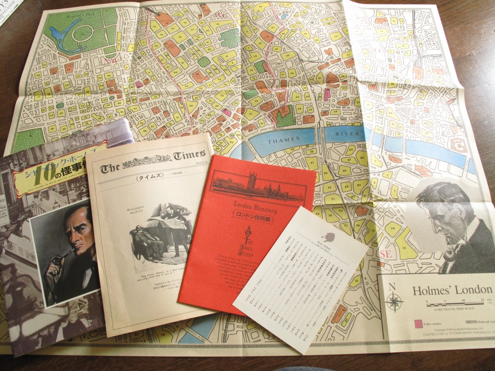 まず、一番後ろに見えるのですがシャーロックホームズの時代、大体1800年後半頃にロンドン市街の地図となっています。もちろん221Bもあり、スコットランドヤードもあり、ホームズ本編に登場した場所もバッチリとあります。これだけでワクワク感が半端じゃない。